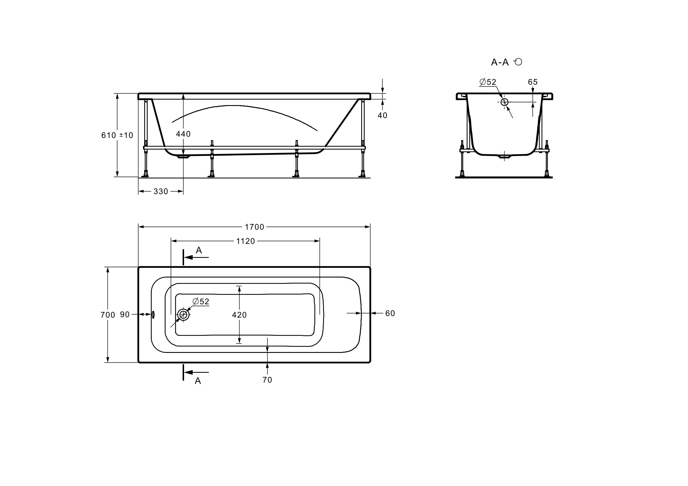Ванна акриловая ROCA LINE (170*70) ZRU9302924