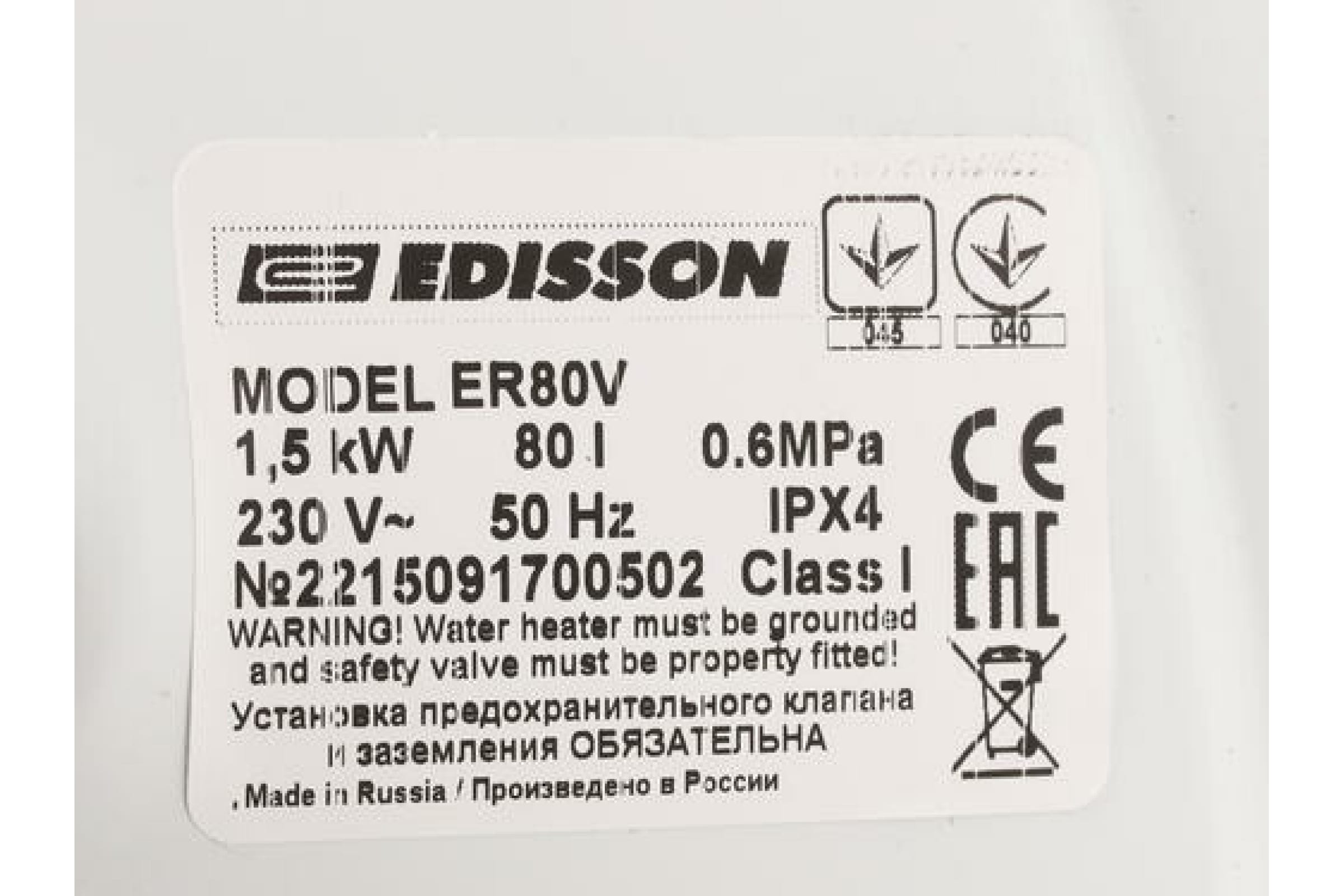 Водонагреватель Edisson ER 80 V